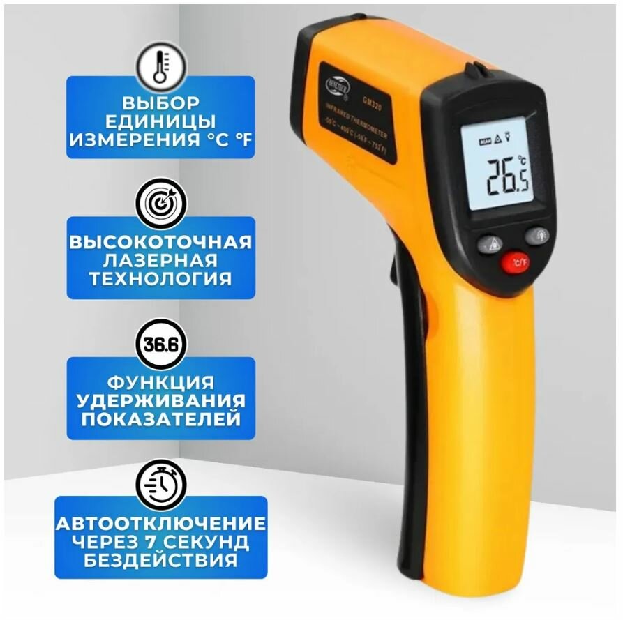 Ниже Вы можете прочитать отзывы на Цифровой инфракрасный термометр, лазерный измеритель температуры, Бесконтактный пирометр с ЖК-дисплеем, 400С, ознакомится с подробными характеристиками, посмотреть интересные обзоры и фотографии на Цифровой инфракрасный термометр, лазерный измеритель температуры, Бесконтактный пирометр с ЖК-дисплеем, 400С.