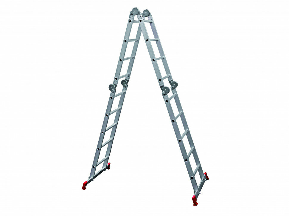 Новая высота Лестница-трансформер 3-х секционная 3×7 ступеней, 3×1,9 м, высота 4,5 м, нагрузка 150 кг, алюминий, новая высота