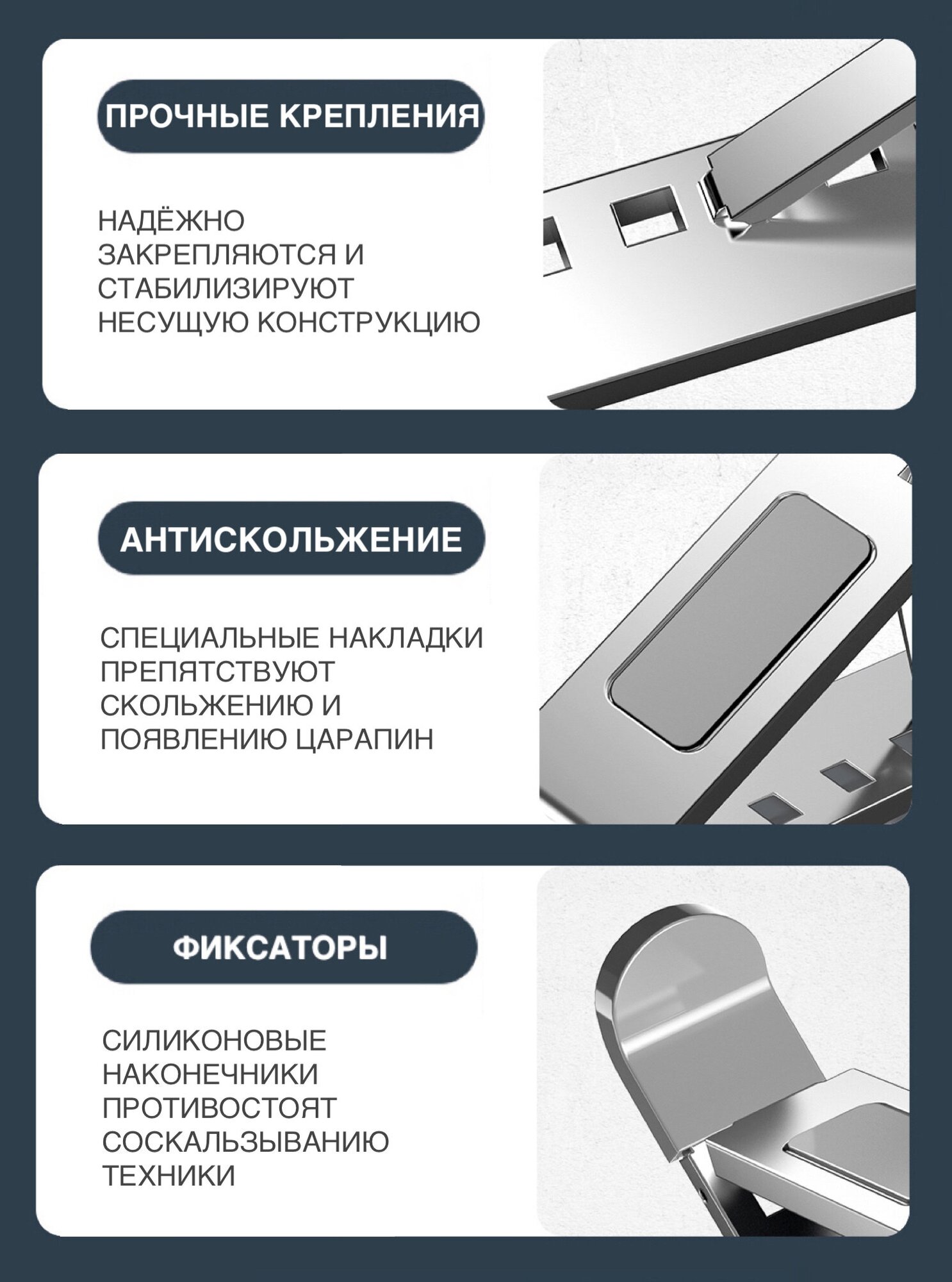 Купить Подставка для ноутбука и планшета Safety DJ складная алюминиевая портативная с регулировкой высоты и угла наклона (серебристая глянцевая)