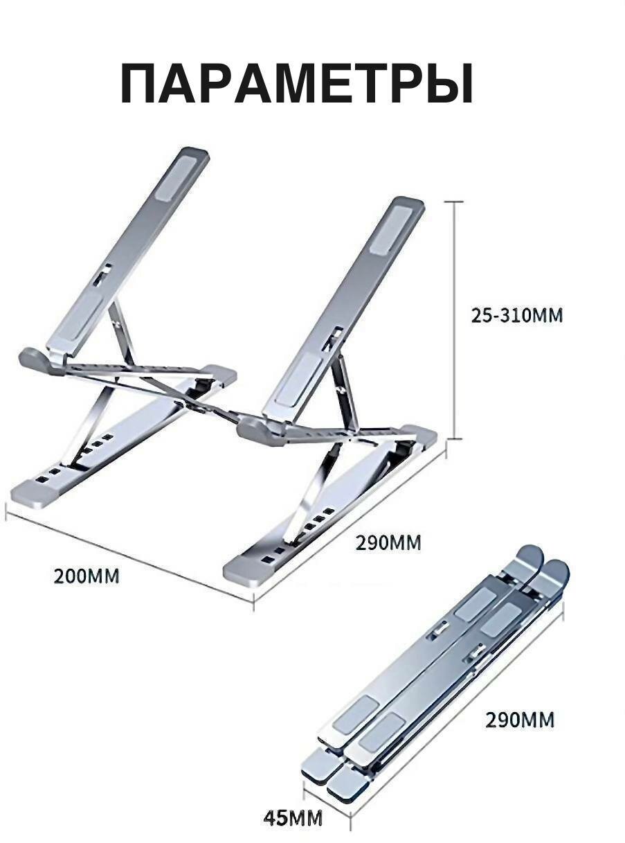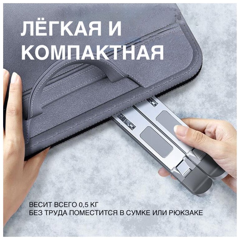 Подставка для ноутбука и планшета Safety DJ складная алюминиевая портативная с регулировкой высоты и угла наклона (серебристая глянцевая) интересное: