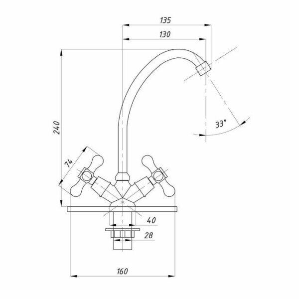 Смеситель для кухни Tsarsberg 272-95, двухвентильный, хром