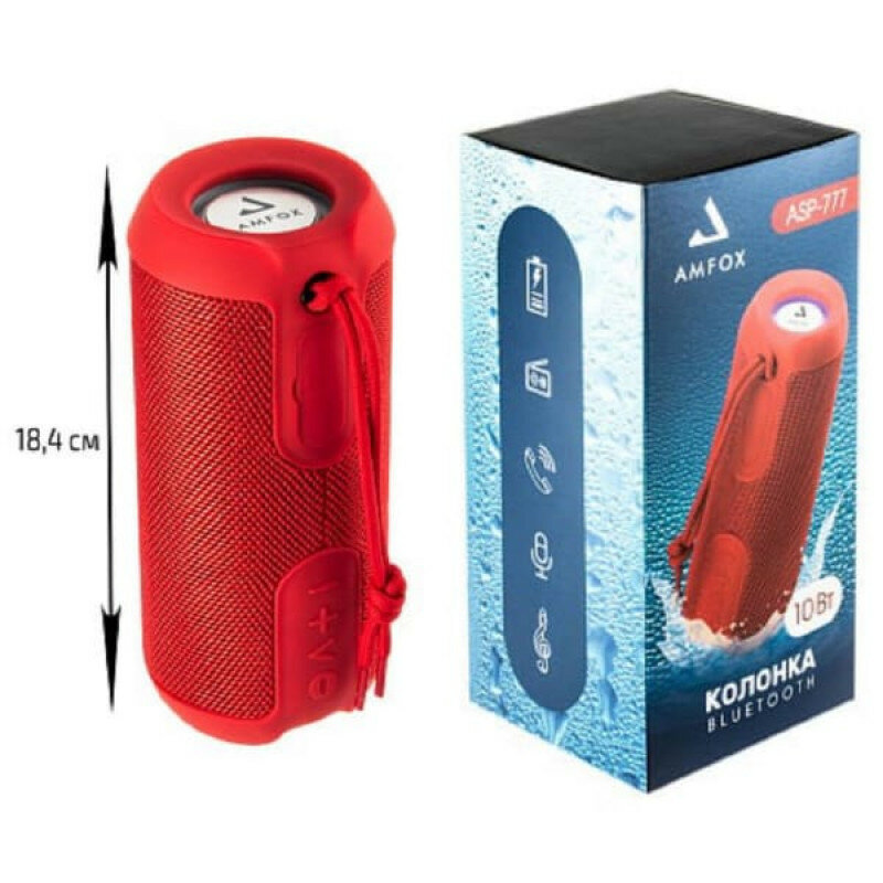 Влагозащитная портативная колонка bluetooth, AMFOX, ASP-777, 2 динамика по 5Вт, как jbl акустика с подсветкой, xiaomi, красная