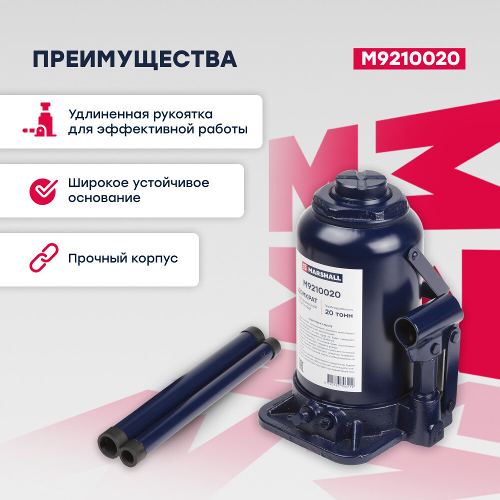 Купить Домкрат автомобильный гидравлический бутылочный MARSHALL M9210020, 20т