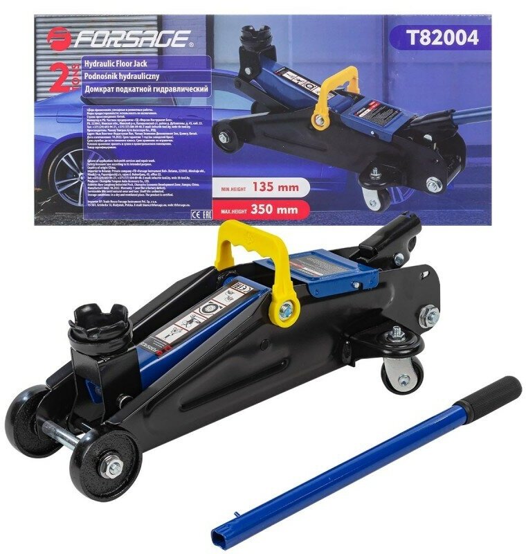Купить FORSAGE F-T82004 Домкрат подкатной гидравлический 2т+чехол для хранения (h min - 135мм, h max - 350мм)