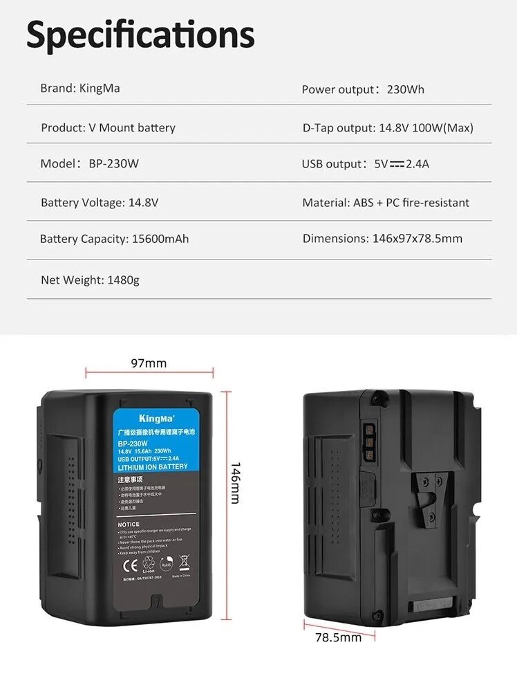 Аккумулятор KingMa BP-230W V-Mount 230Wh интересное: