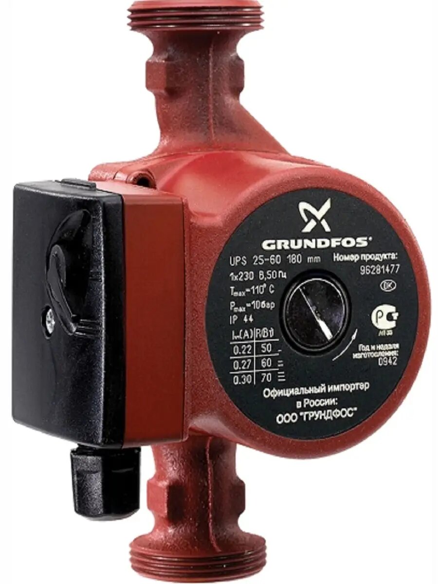| Дополнительная информация | количество рабочих скоростей: 3; тип ротора: "мокрый"; класс защиты: IP 44; класс изоляции: F; рабочее колесо: композит PES+30% GF |