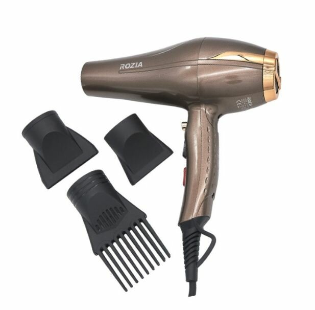 Профессиональный фен для волос RoziaPro, для волос, Фен Rozia Pro,уход,подача холодного воздуха,3 насадки,набор,бронза