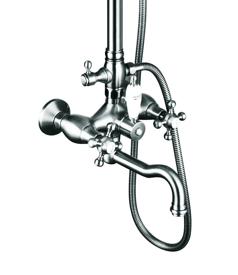 | Комплектация | Смеситель с поворотным изливом - 1 шт. Штанга тропического душа / выдвижная - 1 шт. Держатель ручной лейки (латунный) - 1 шт. Дивертор -1 шт. Ручная лейка (латунная) - 1 шт. Тропический душ (латунный) - 1 шт. Шланг душа 1,5 м - 1 шт. Эксцентриковые соединители - 2 шт. Декоративные отражатели - 2 шт. Крепеж к стене с декоративным отражателем - 1 шт. Инструкция - 1 шт. |