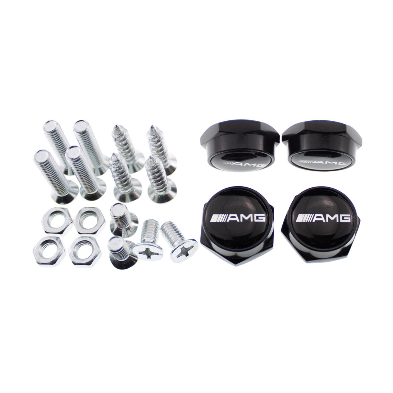 Комплект: пластиковая рамка для гос. номера для AMG 2шт. плюс болты для номерных знаков для AMG черный 4шт.
