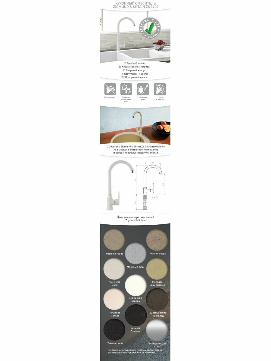 Смеситель Zigmund & Shtain ZS 0400 (Нержавеющая сталь) интересное: