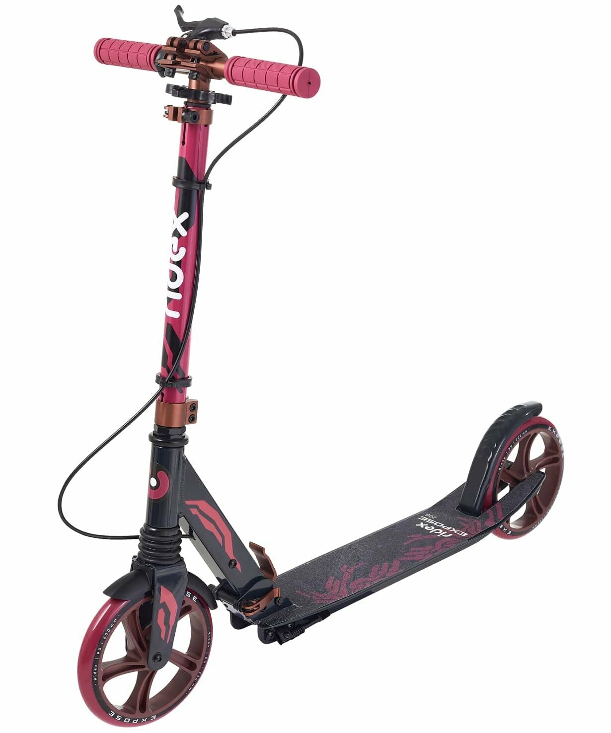 Самокат Ridex 2-колесный Expose 200 мм, колодочный тормоз, бордовый/черный