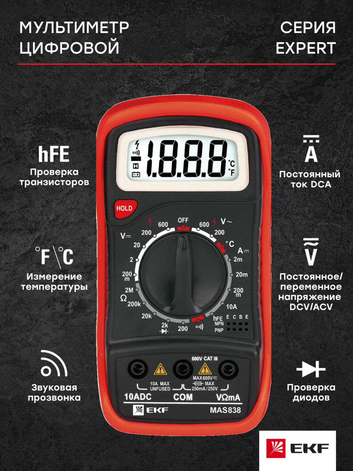 Мультиметр цифровой MAS838 Expert EKF In-180701-pm838 интересное: