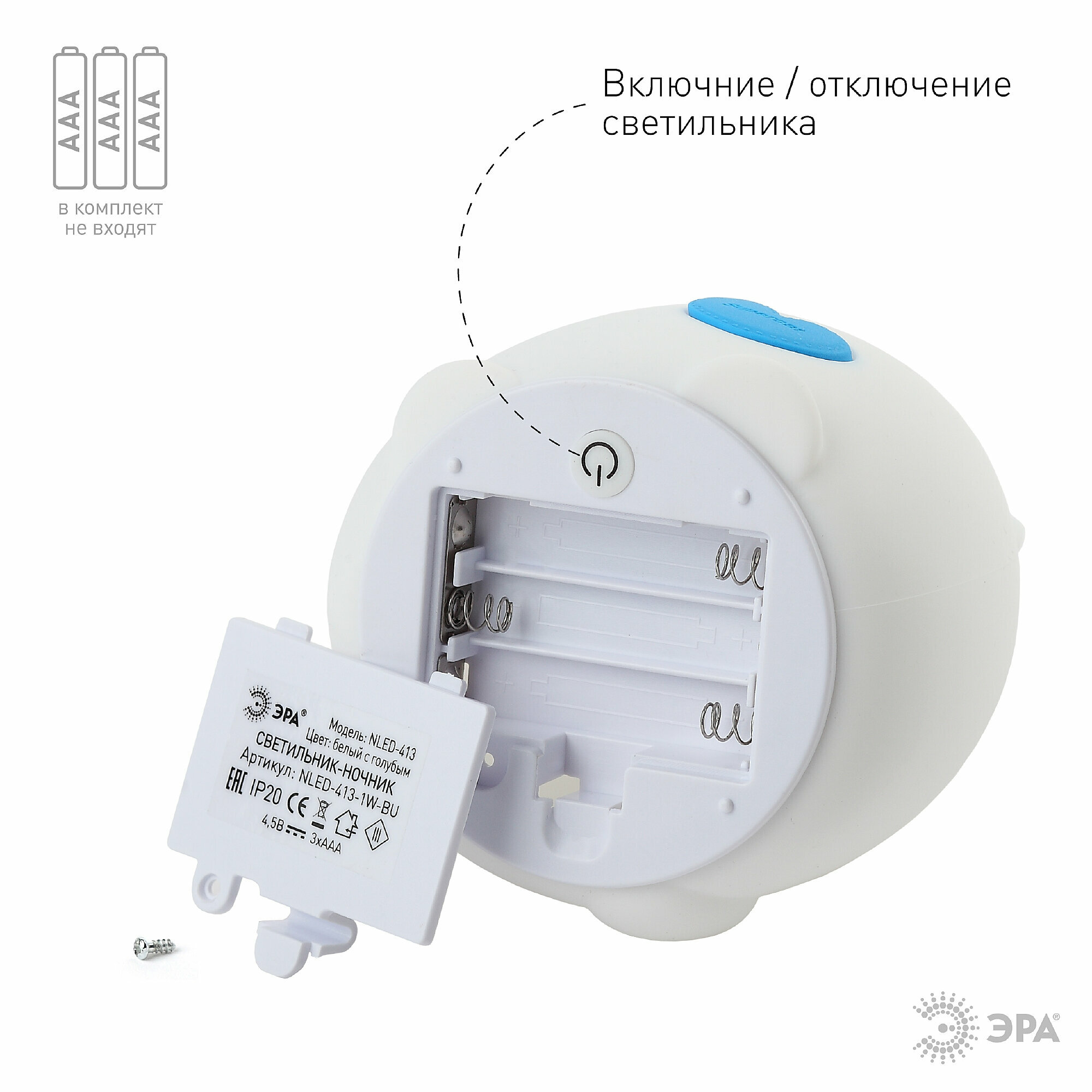 ЭРА светильник-ночник NLED-413-1W-BU белый с синим (30/60/360)
