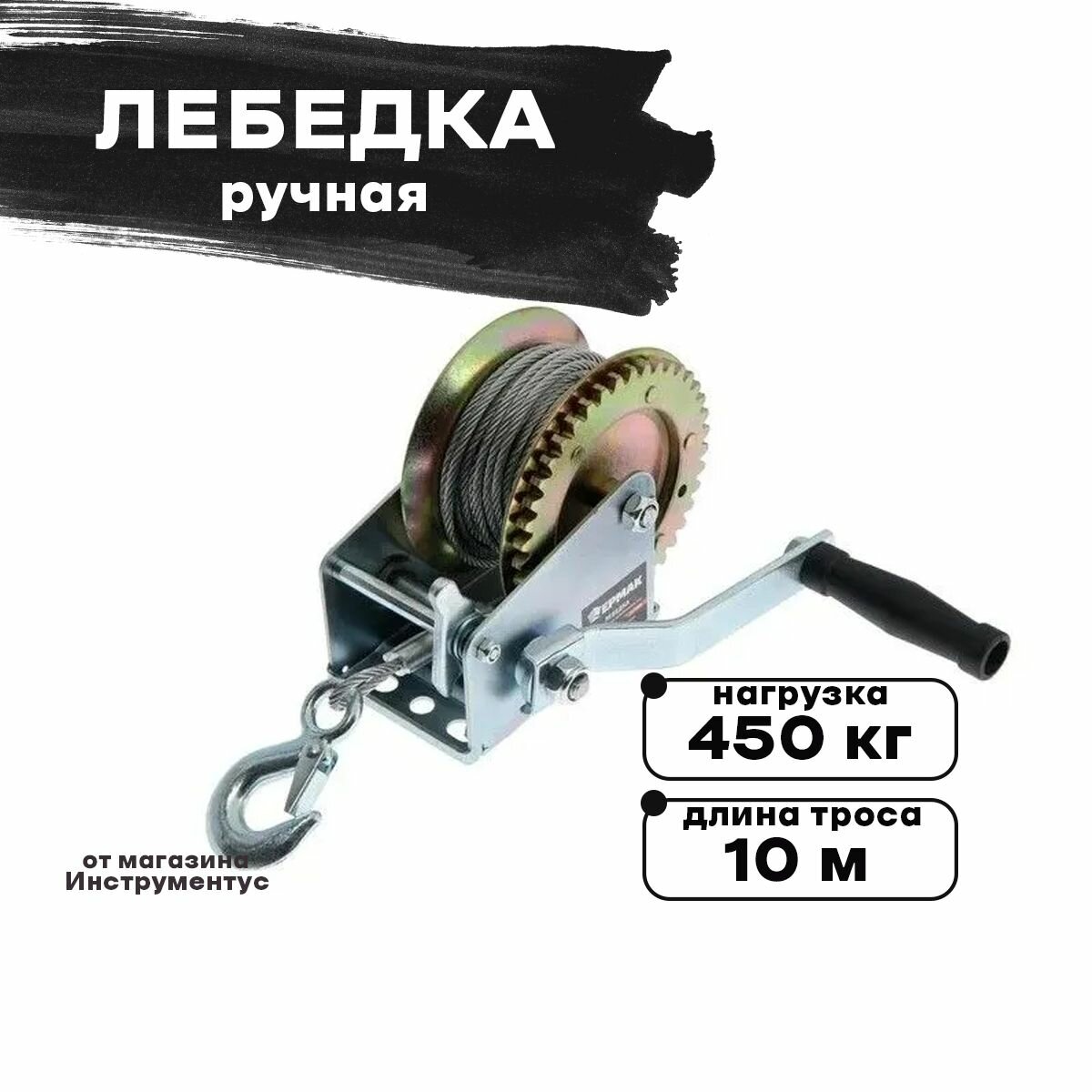 Лебедка ручная TRT 1101C металлический трос, 450кг, длина троса 10м интересное: