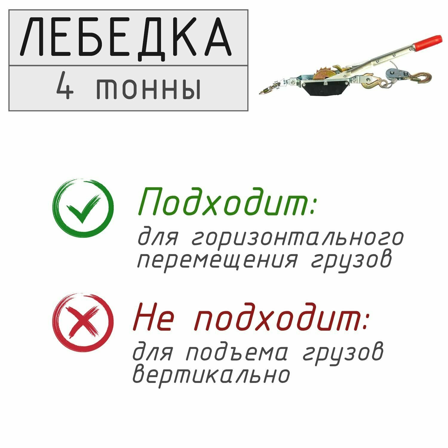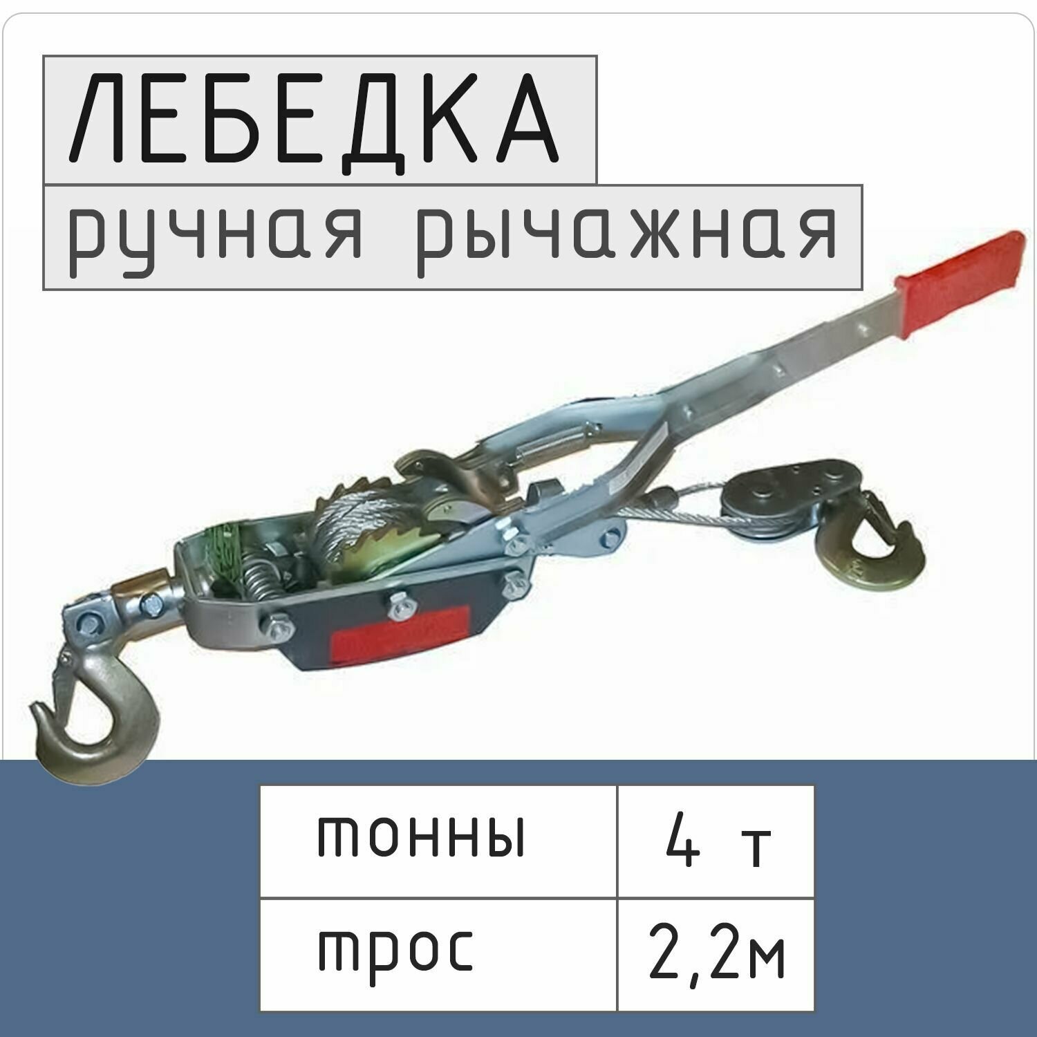 Лебедка ручная рычажная 4 тонны, трос 2.2 метра. Храповой механизм. интересное: