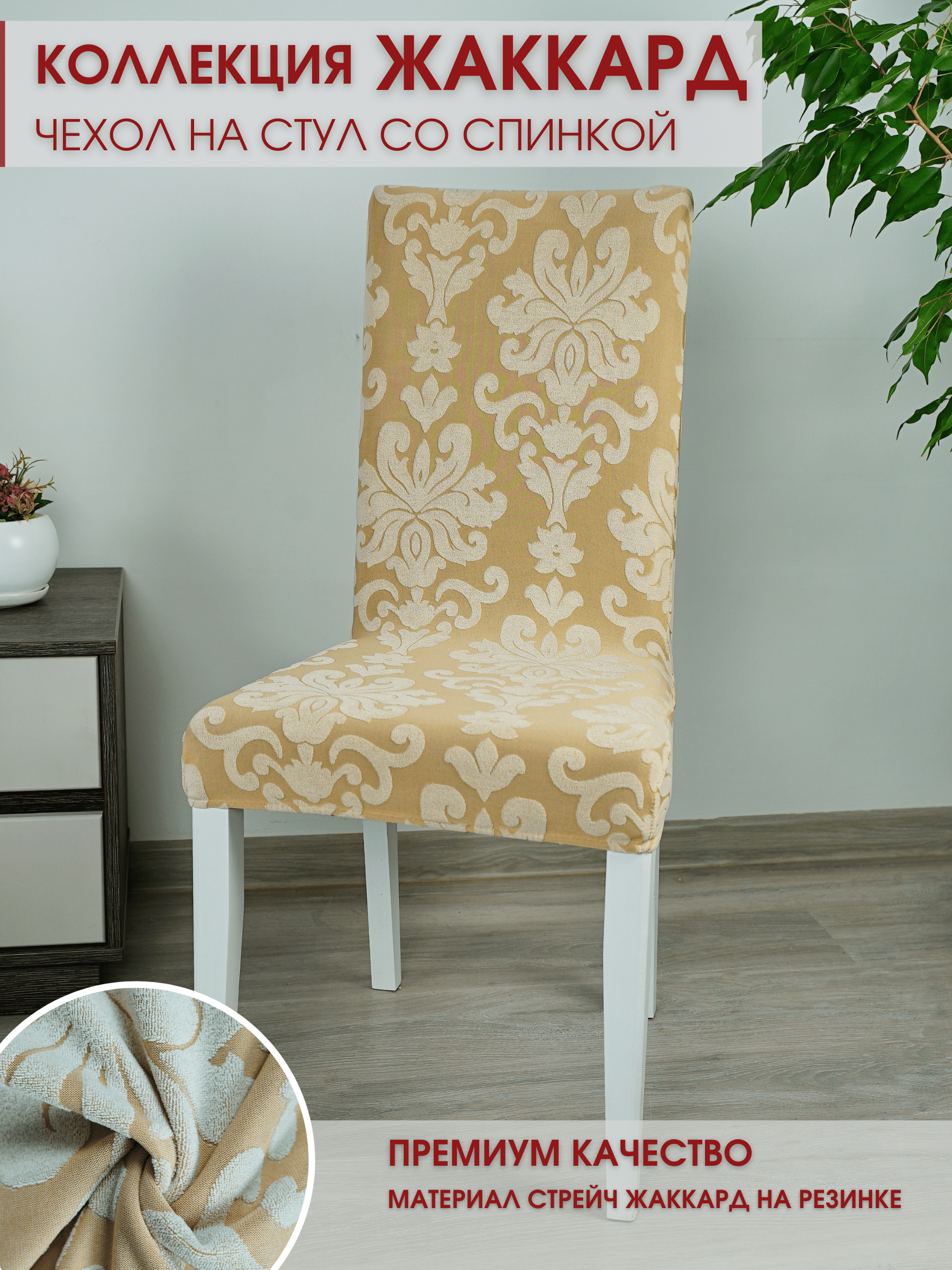 Чехол на стул трикотаж жаккард, цвет светло-коричневый, 100% полиэстер