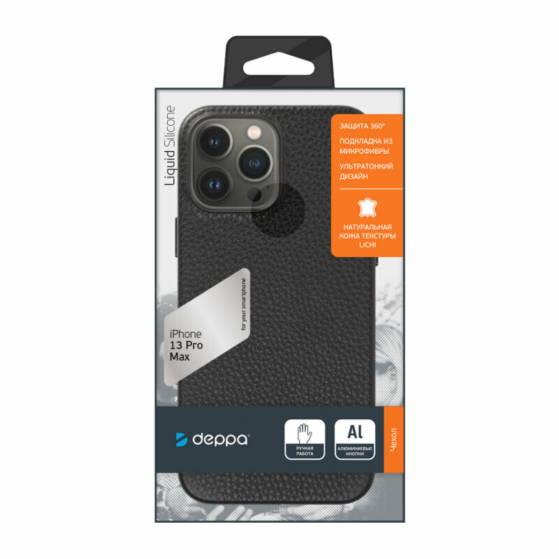 Чехол Deppa Leather Case для Apple iPhone 13 Pro Max, черный, картон интересное: