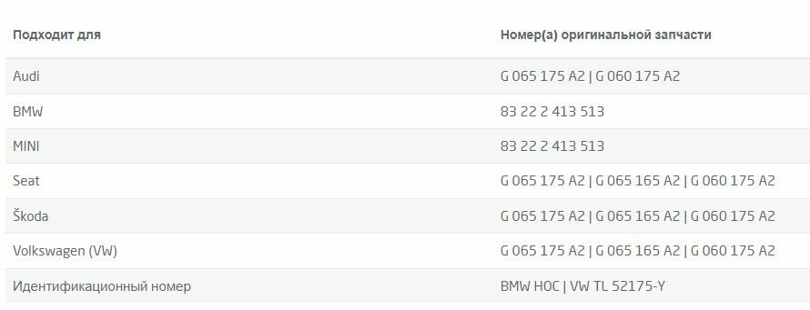 | Допуски OEM | VW TL 52 175 |