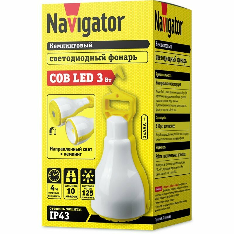 Фонарь Navigator 14 266 NPT-CA19-3AAA Кемп/прож.1COB 3Вт, блист., цена за 1 шт. интересное: