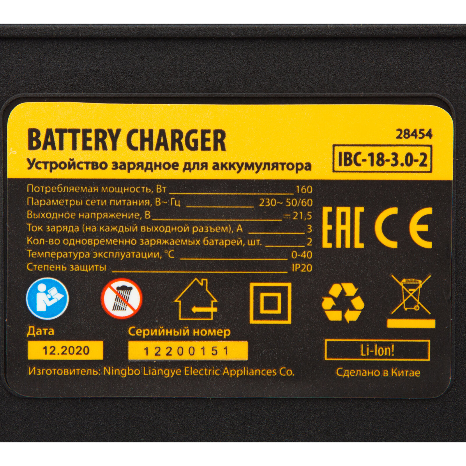 Устройство зарядное для аккумуляторов Denzel IBC-18-3.0-2 Li-Ion, 18В, 3, 0 А, для двух батарей 28454 интересное: