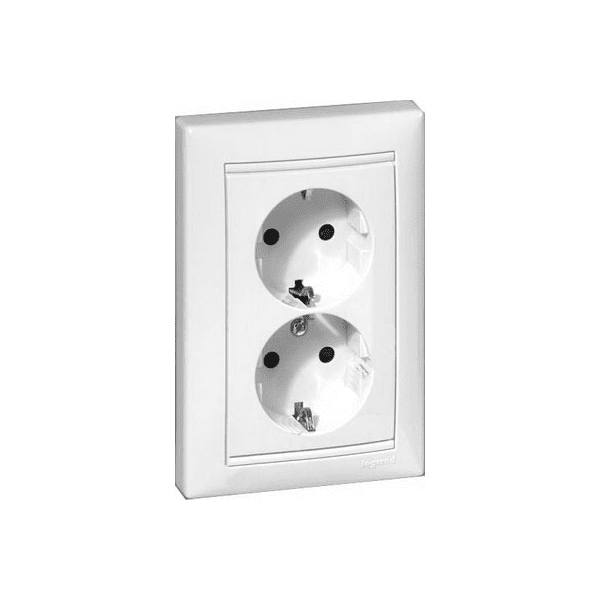Розетка 2-м СП Valena 16А IP20 2х2P+E с заземл. немецк. стандарт на винтах в сборе бел. Leg, LEGRAND 774400 (1 шт.)