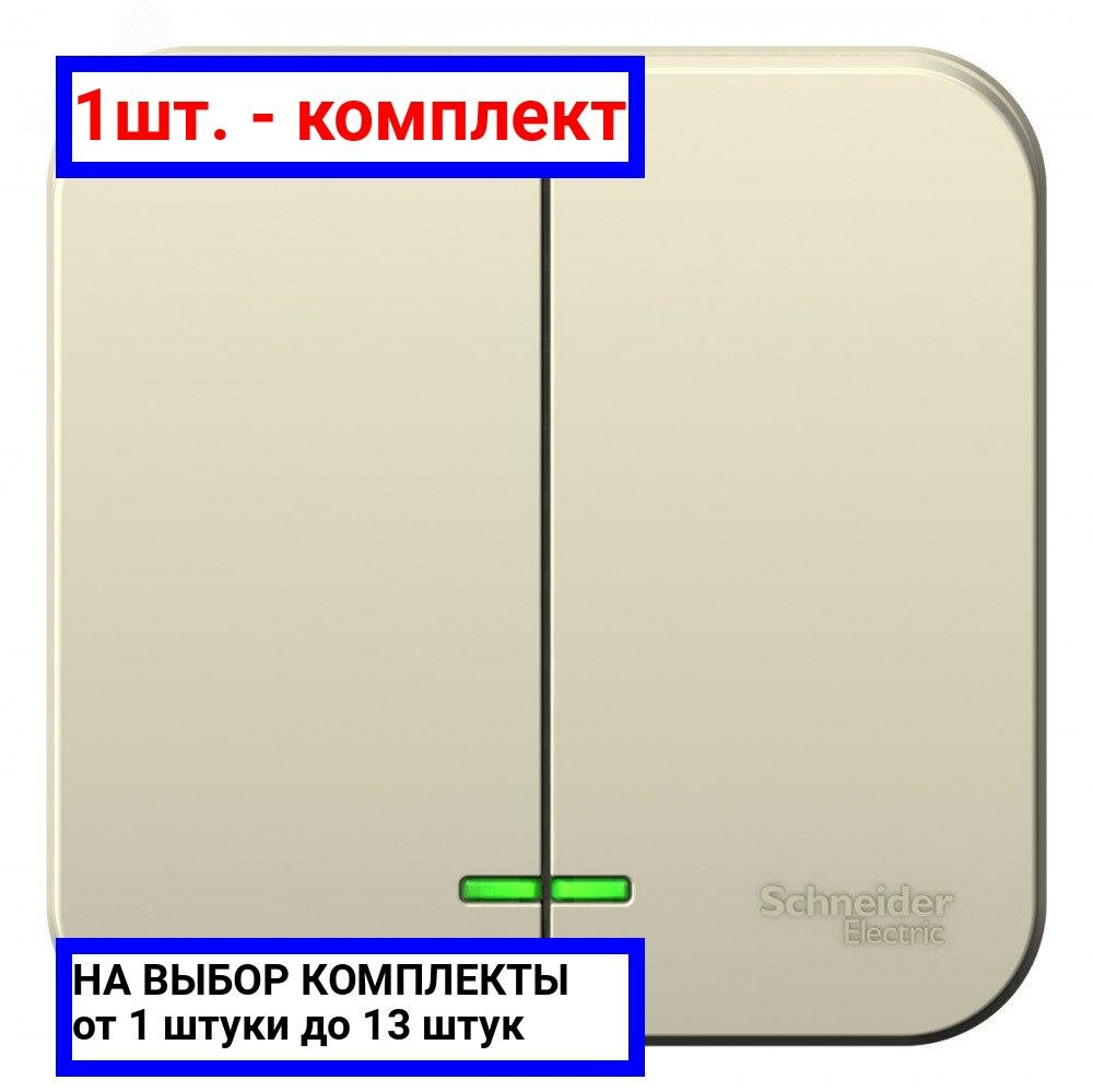 3шт. - Выключатель наружный двухклавишный BLANCA (cх.5) с подстветкой, изолирующей пластиной, 10А, 250В, молочный / Systeme Electric; арт. BLNVA105112; оригинал / - комплект 3шт