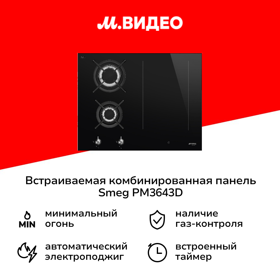 Панель варочная комби (газ + индукция) Smeg PM3643D Чёрный, 65 см, прямой край