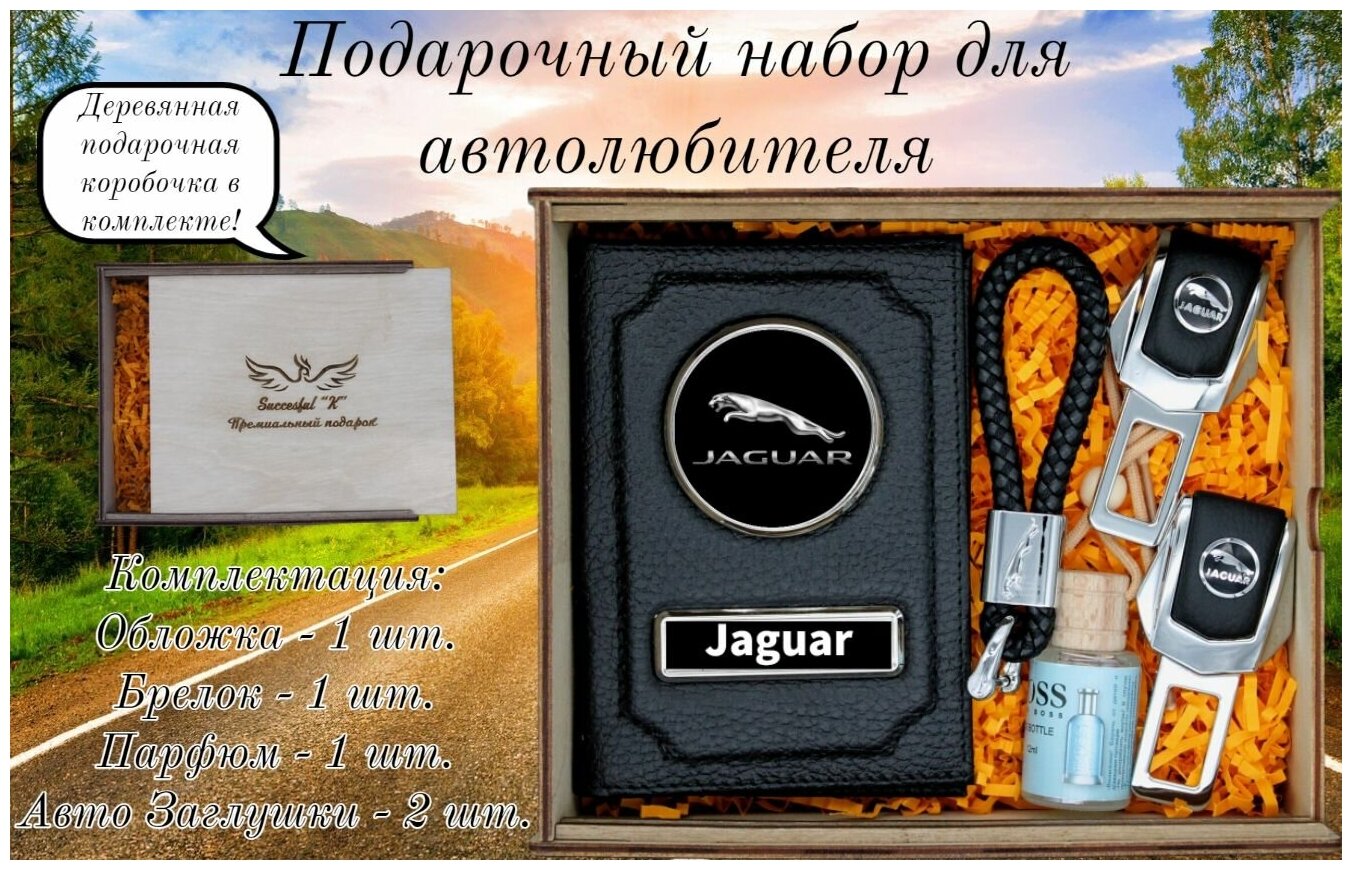 Коробка подарочная деревянная набор женщине мужчине парню с крышкой наполнением необычный в машину. Набор автомобилиста.Jaguar. Ягуар. интересное: