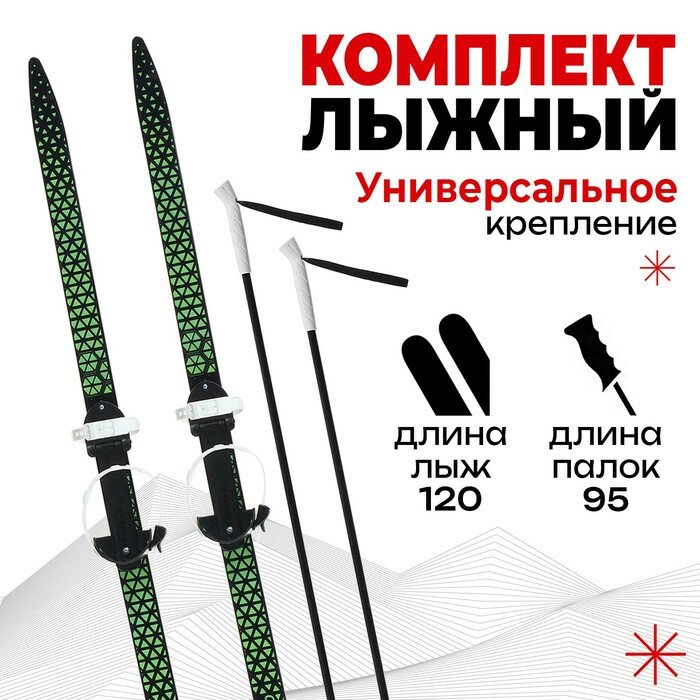 Купить Лыжный комплект подростковый: пластиковые лыжи 120 см с насечкой, стеклопластиковые палки 95 см, универсальное крепление Ski Race Градиент