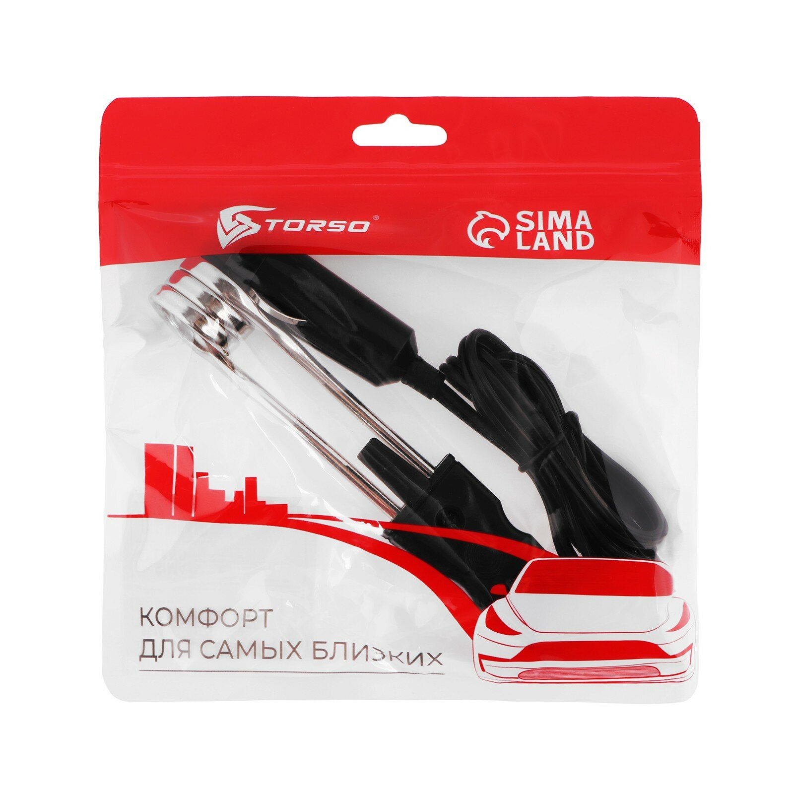 TORSO Кипятильник автомобильный, TORSO, от прикуривателя 12 В, провод 1 м