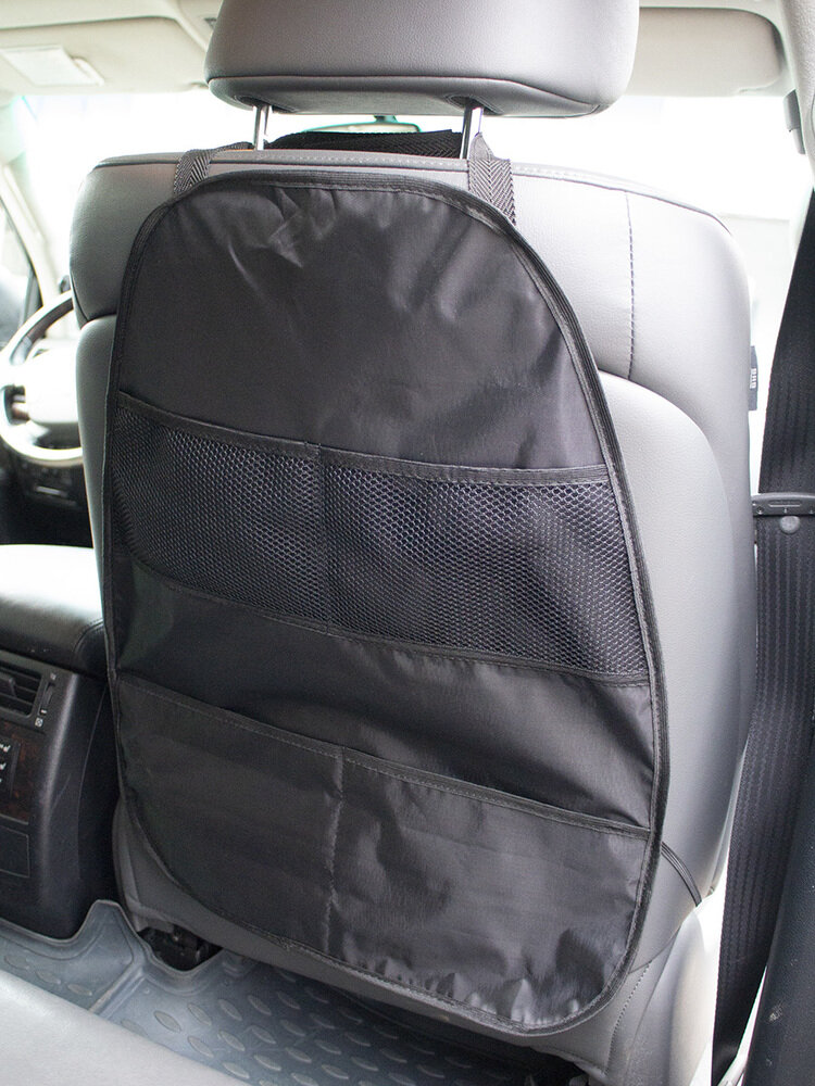 Купить Накидка защитная органайзер на спинку переднего сидения 60х45 см, черная, ткань Оксфорд, 4 кармана