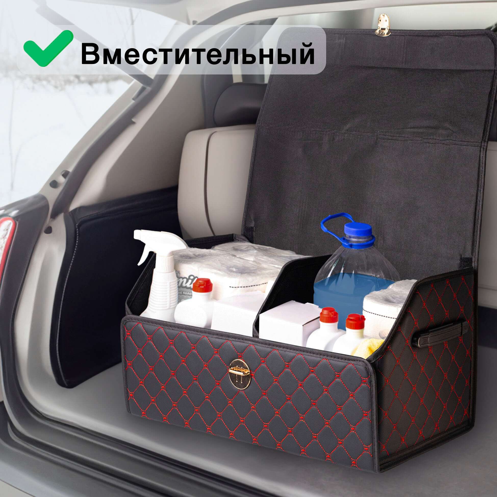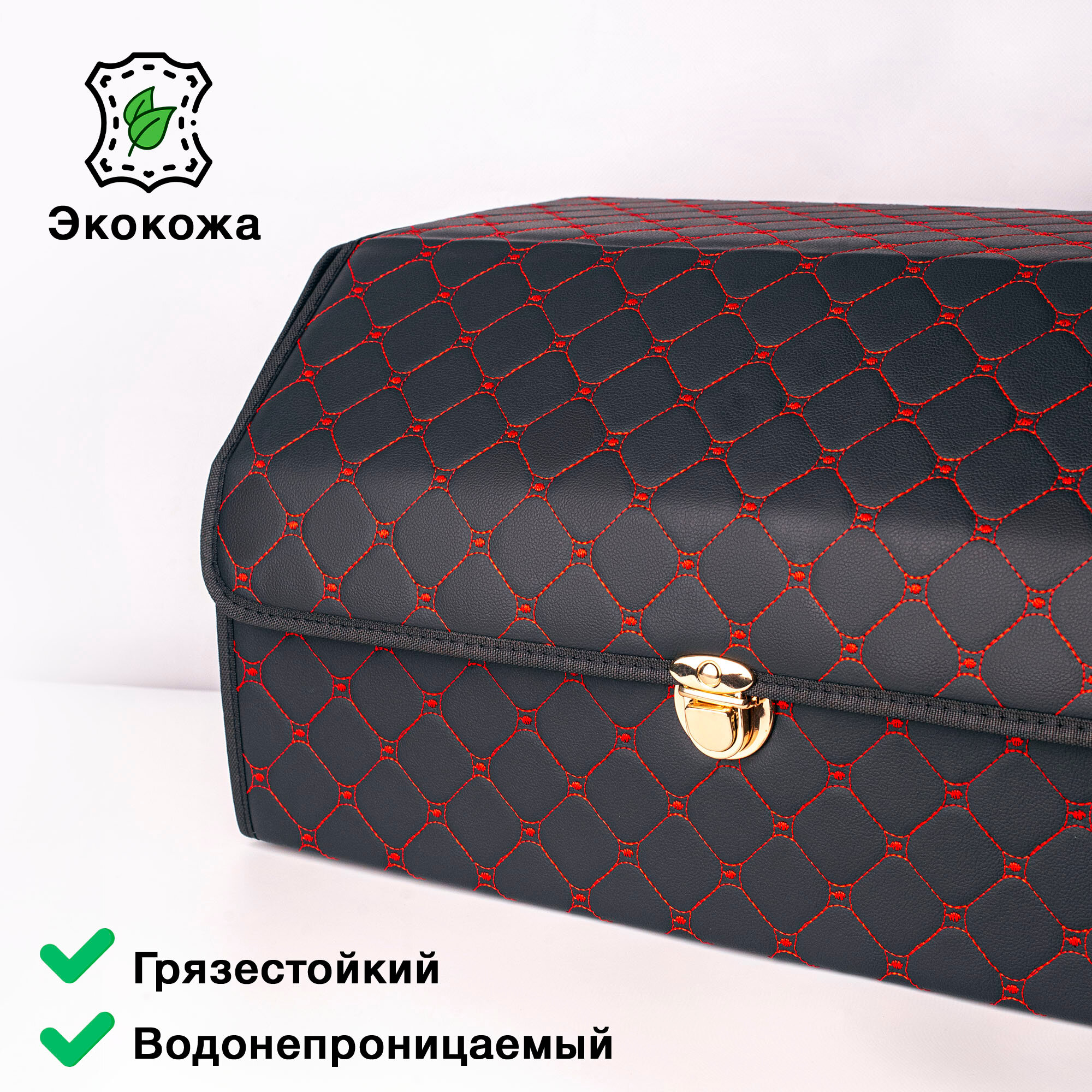 Органайзер для багажника "Good Sale", 55x30x28 см, экокожа, черный с серебристой строчкой