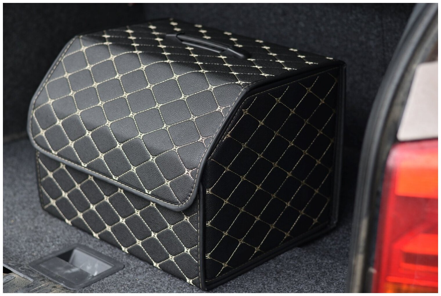 Саквояж в багажник автомобильный эко кожа черная синий ромб, объем 45 л