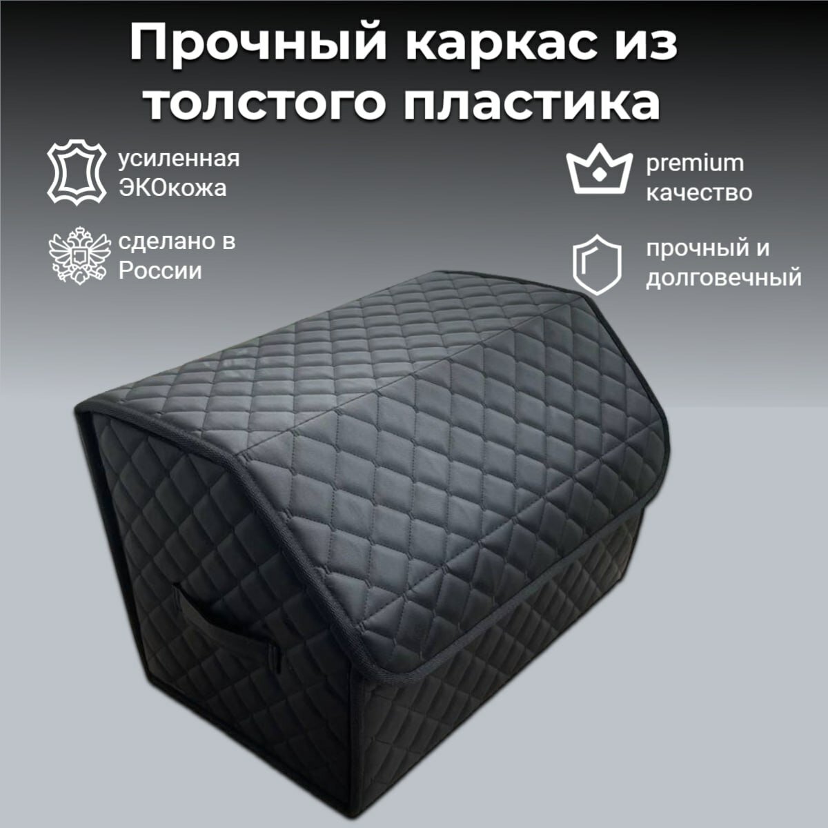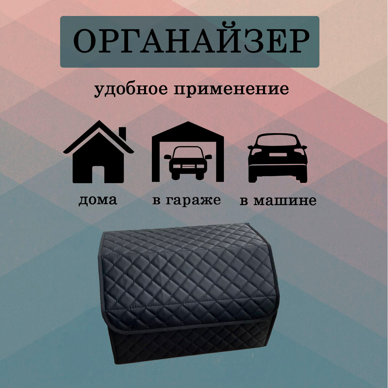 Саквояж в багажник автомобильный эко кожа черная синий ромб, объем 45 л