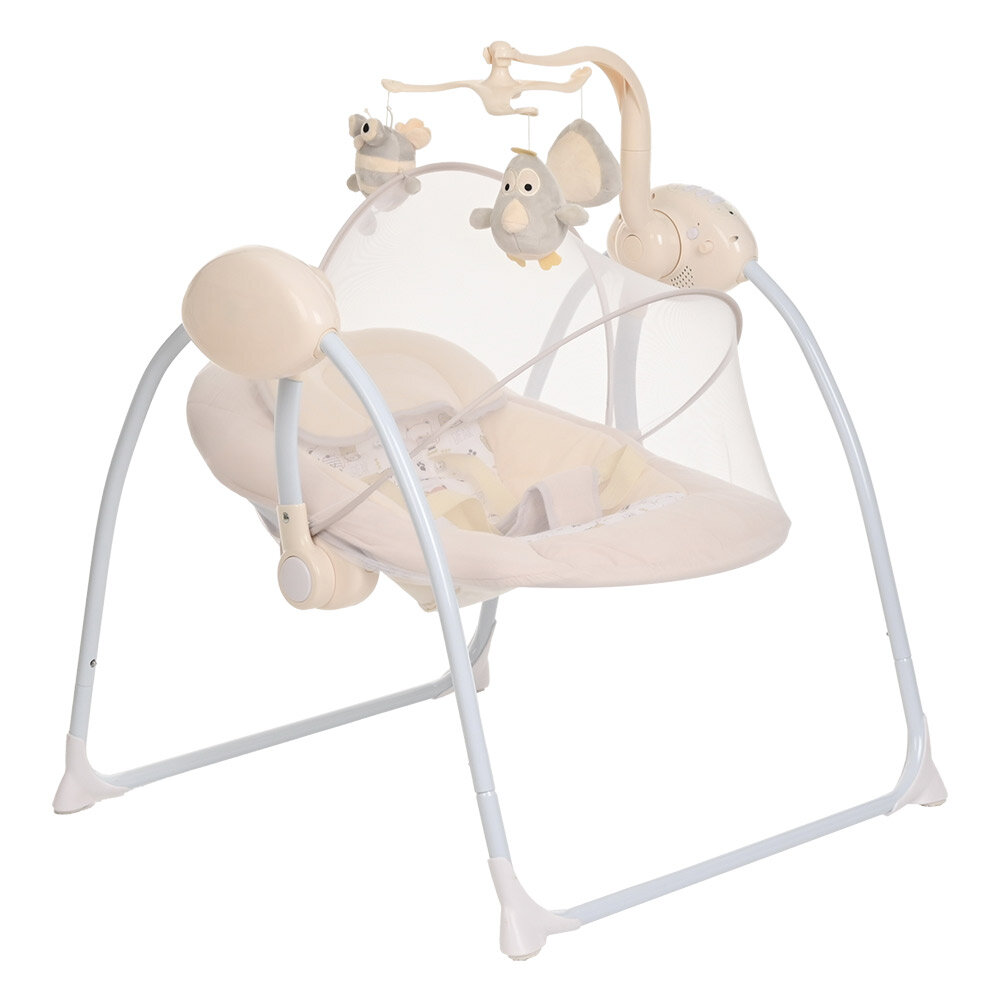 Электрокачеля детская для новорожденных Marbella Beige Bear с таймером, пультом, 5 скоростей