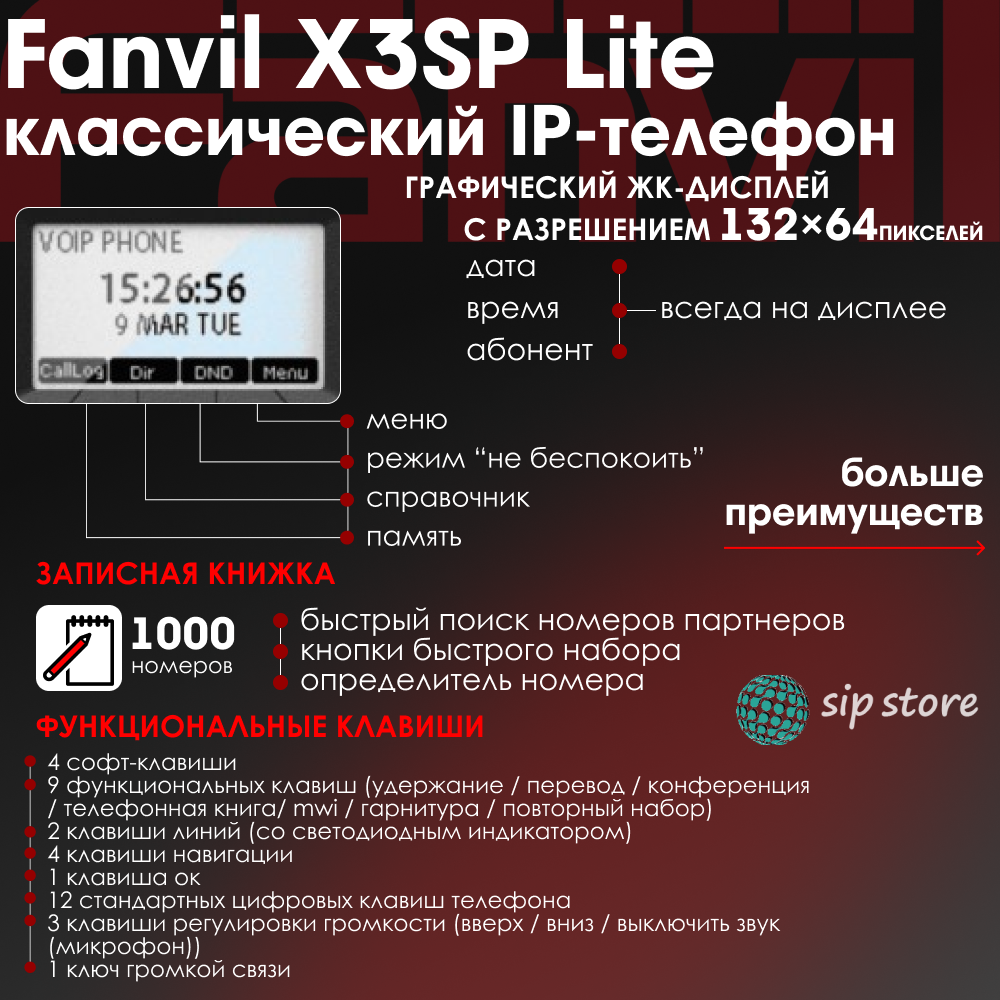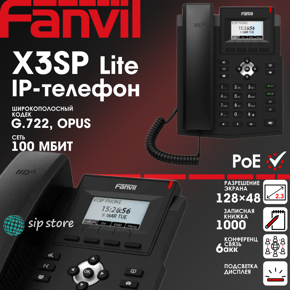 Телефон IP Fanvil X3SP Lite черный интересное: