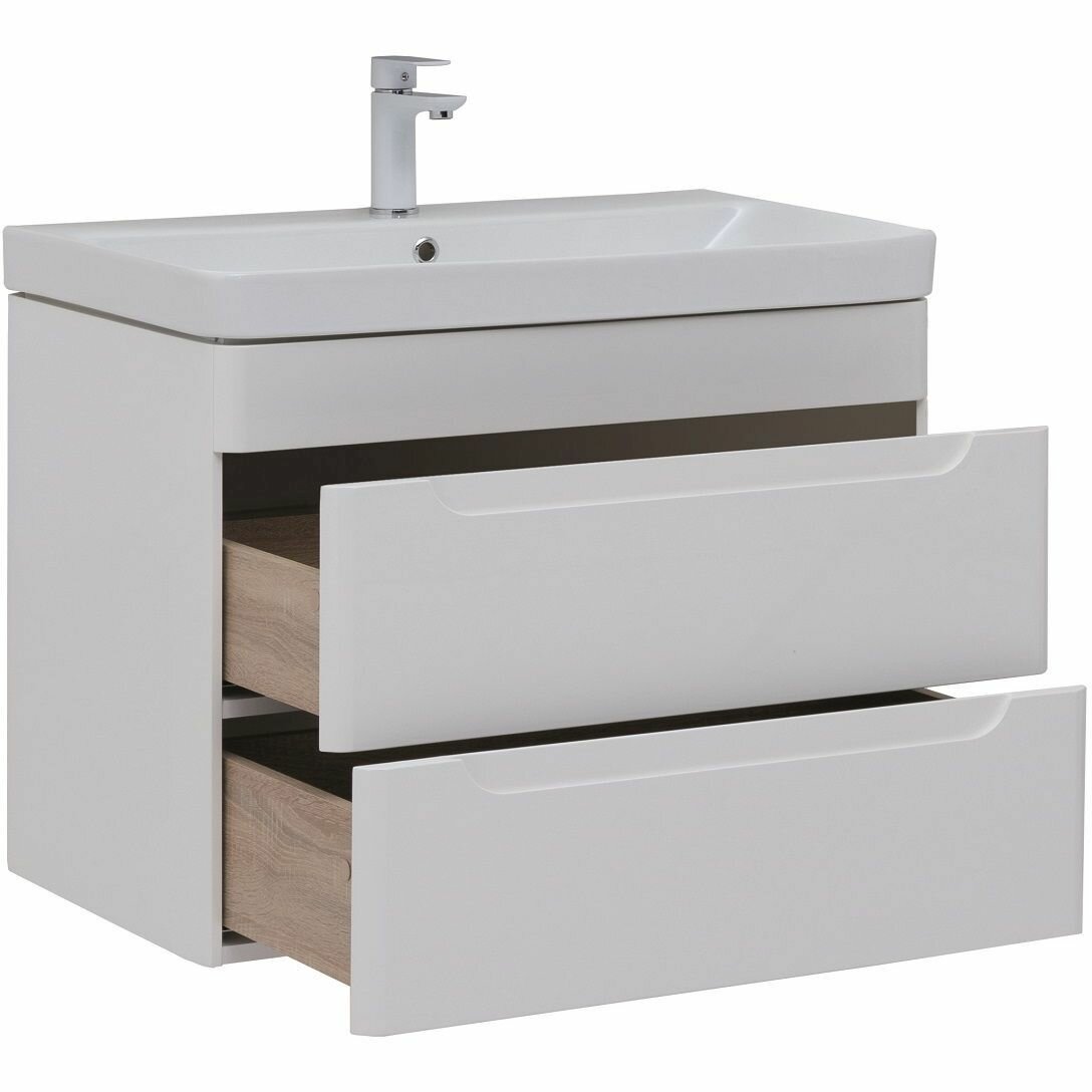 Купить Тумба с раковиной Aquanet София 80 белый глянец (2 ящика) 00274002