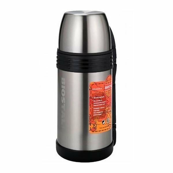 Термос универсальный для еды и напитков Biostal Спорт 1,5 литра с ручкой, стальной