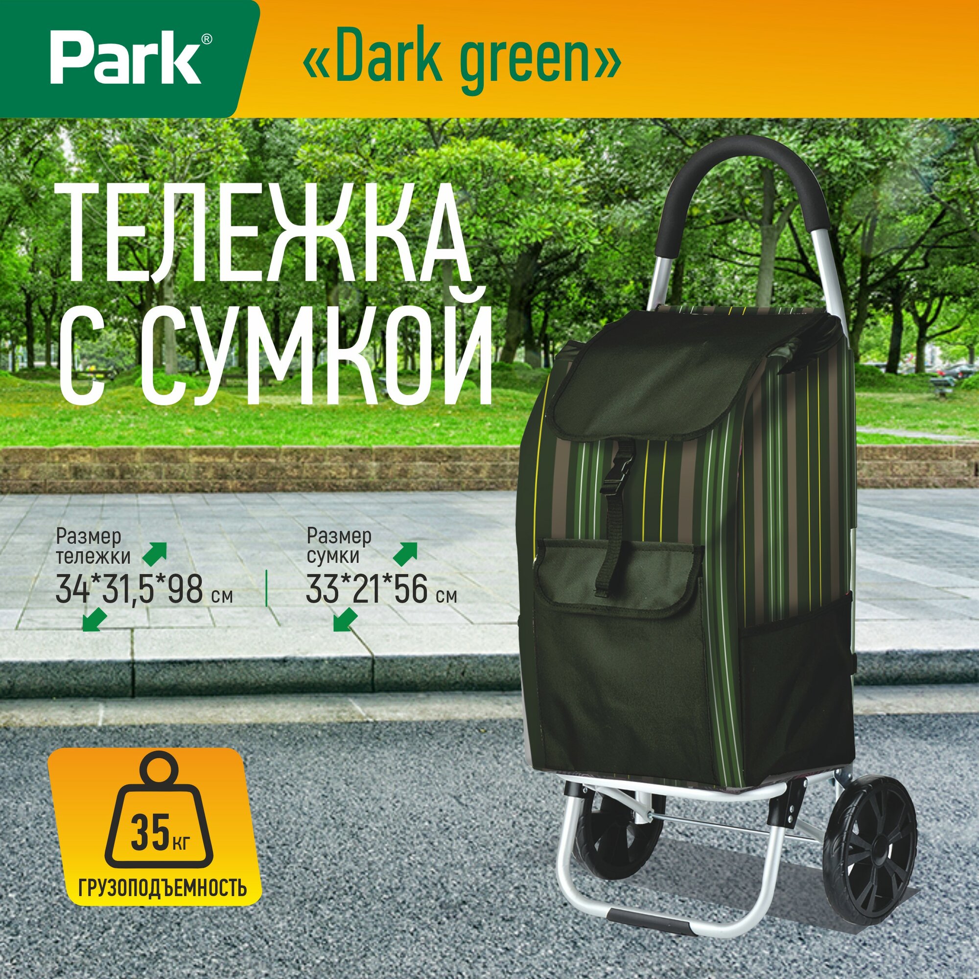 Тележка с сумкой PARK Dark green, 35 кг 104597