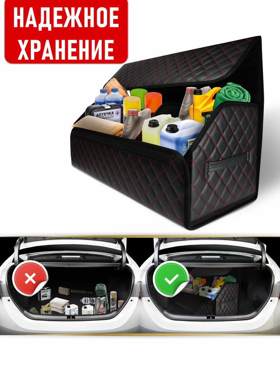 CarCape/Органайзер в багажник автомобиля. Автомобильный бокс для хранения. Модель Classic ромб 50*30см/ Черный, красная строчка