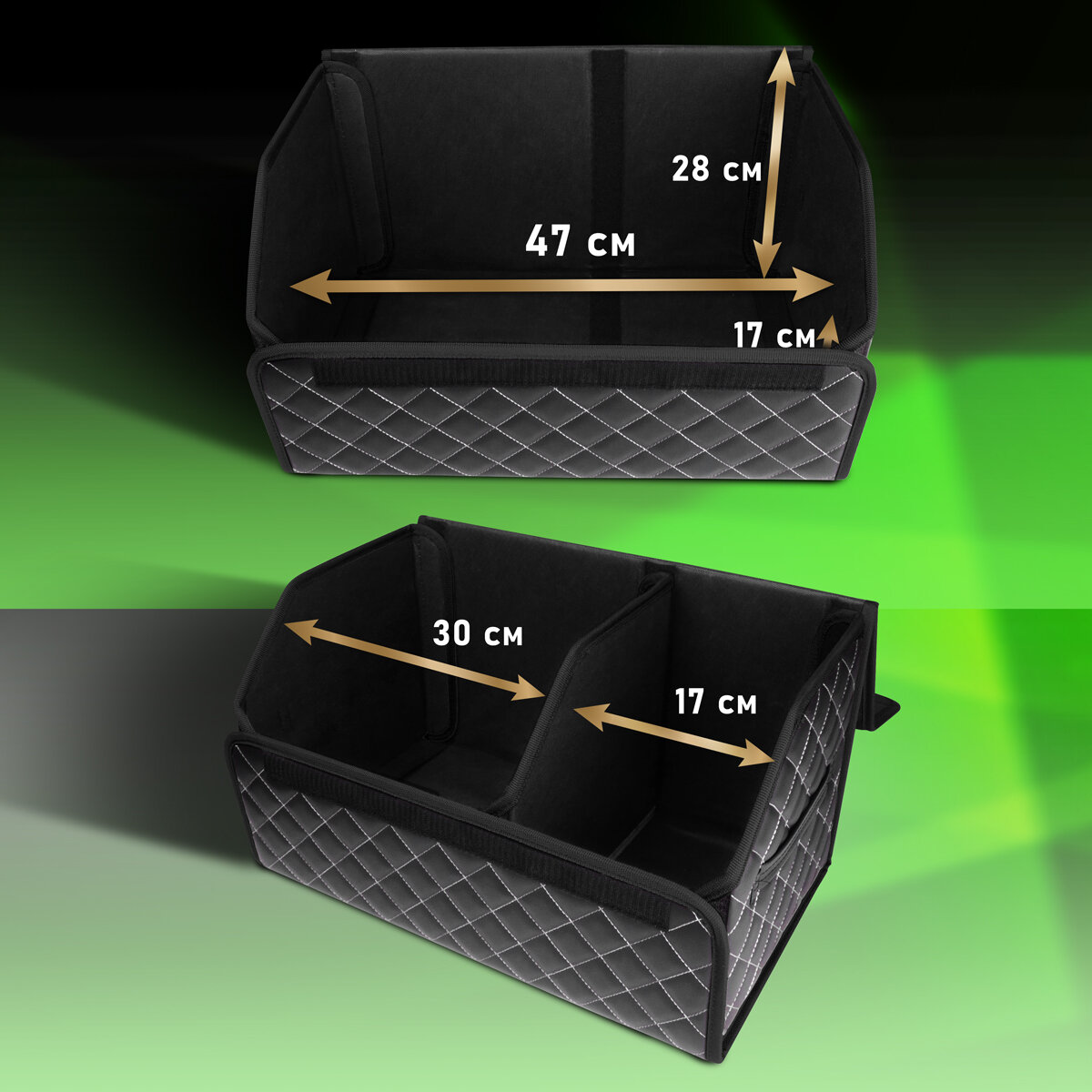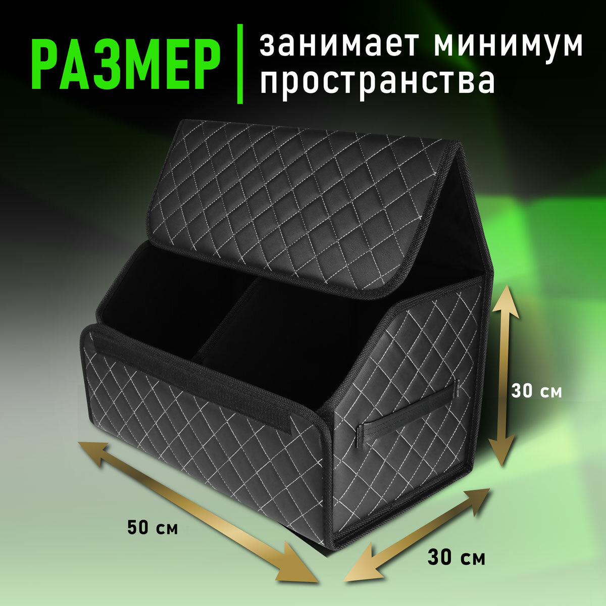 CarCape/Органайзер в багажник автомобиля. Автомобильный бокс для хранения. Модель Classic ромб 50*30см/ Черный, бежевая строчка