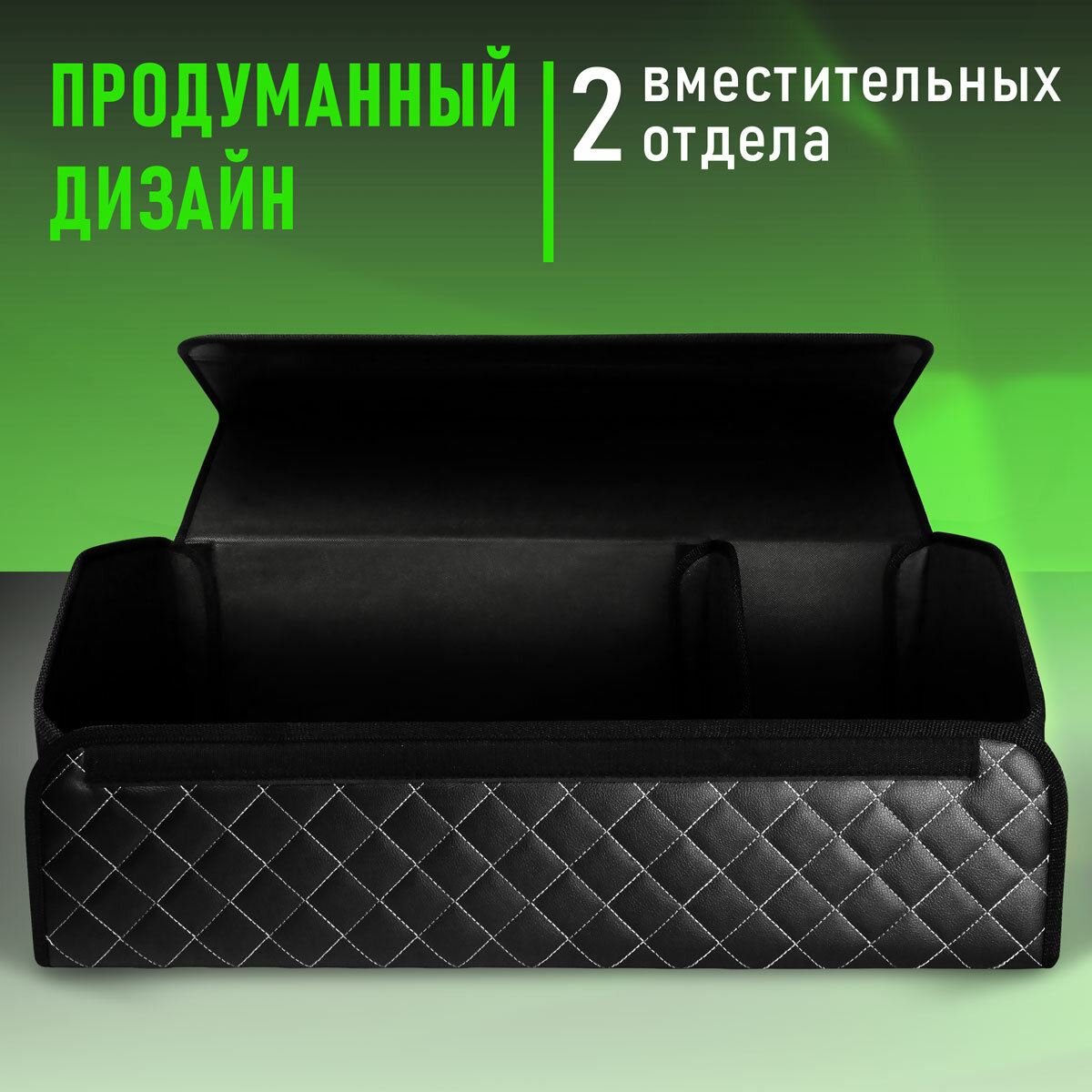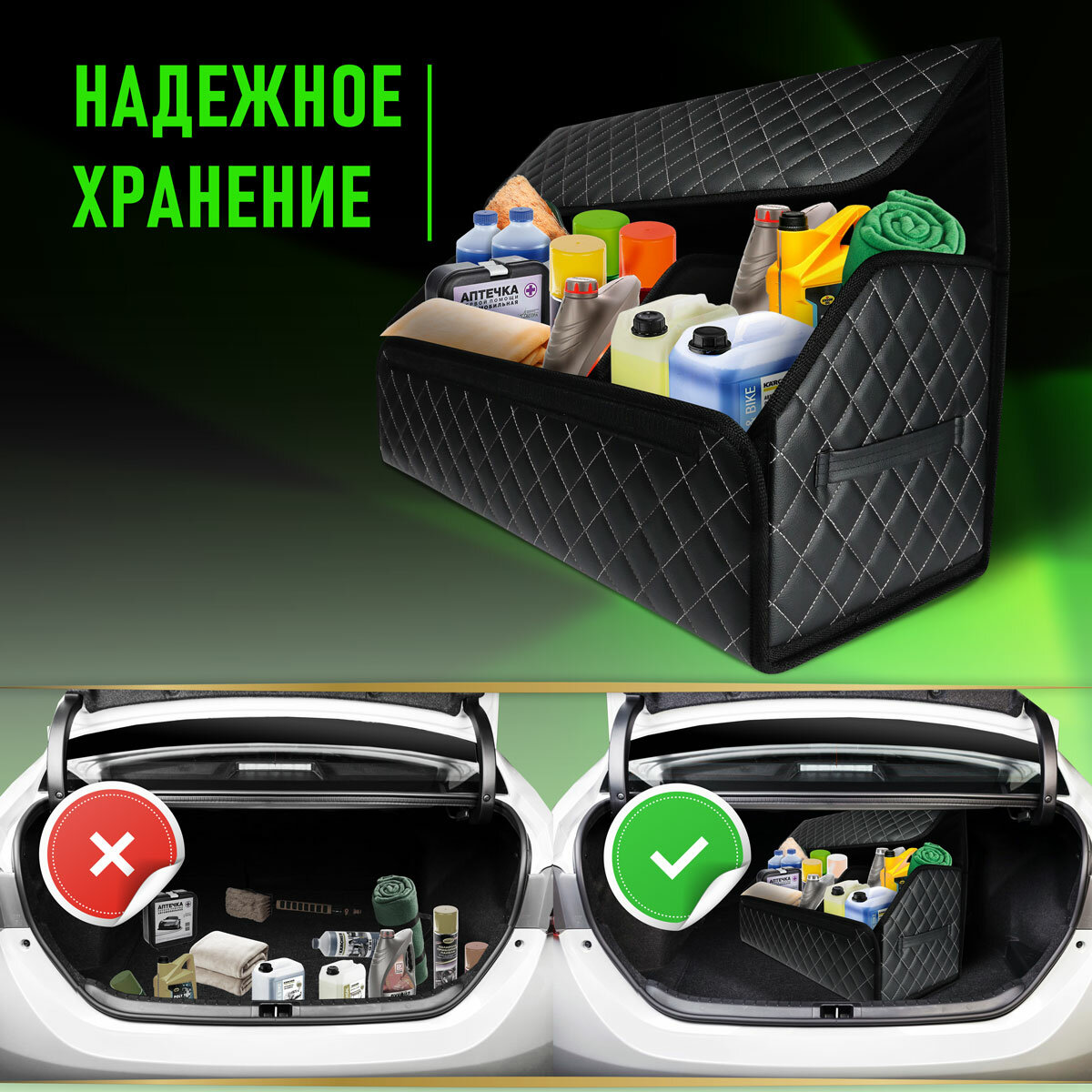 CarCape/Органайзер в багажник автомобиля. Автомобильный бокс для хранения. Модель Classic ромб 50*30см/ Черный, бежевая строчка