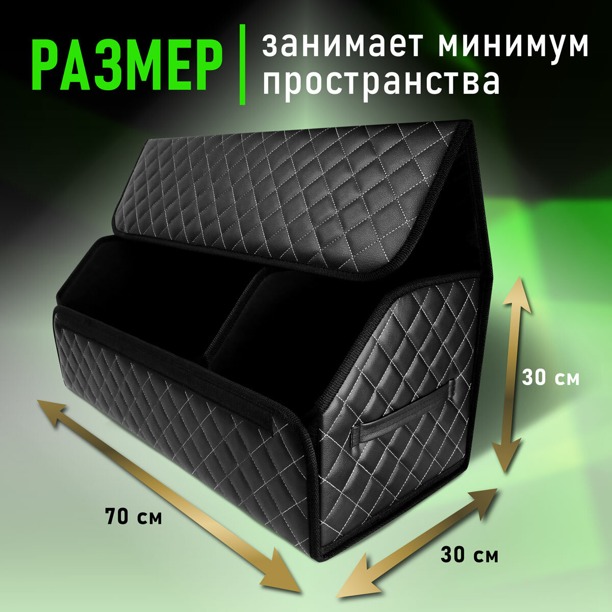 CarCape/Органайзер в багажник автомобиля. Автомобильный бокс для хранения. Модель Classic ромб 70*30см/Чёрный, белая строчка