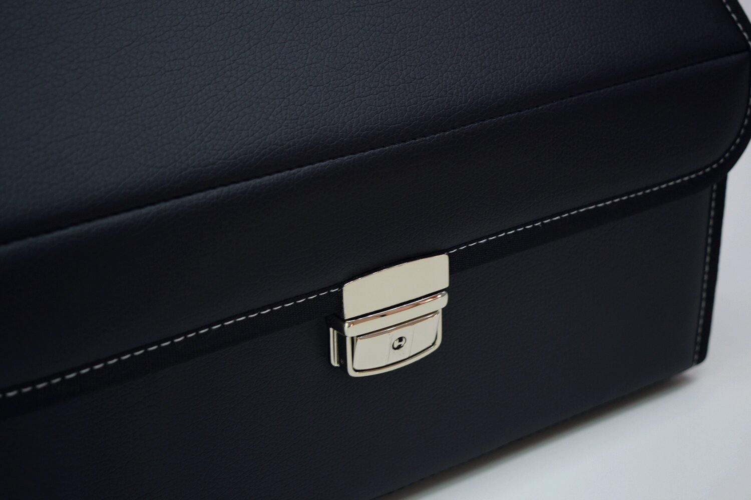 Саквояж в багажник автомобильный эко кожа черная синий ромб, объем 45 л