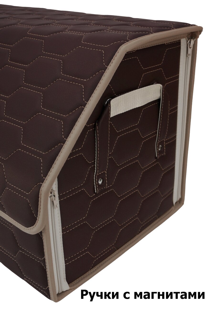 Купить Органайзер-саквояж в багажник "Союз Премиум" (размер XL). Цвет: коричневый с бежевой прострочкой Соты.