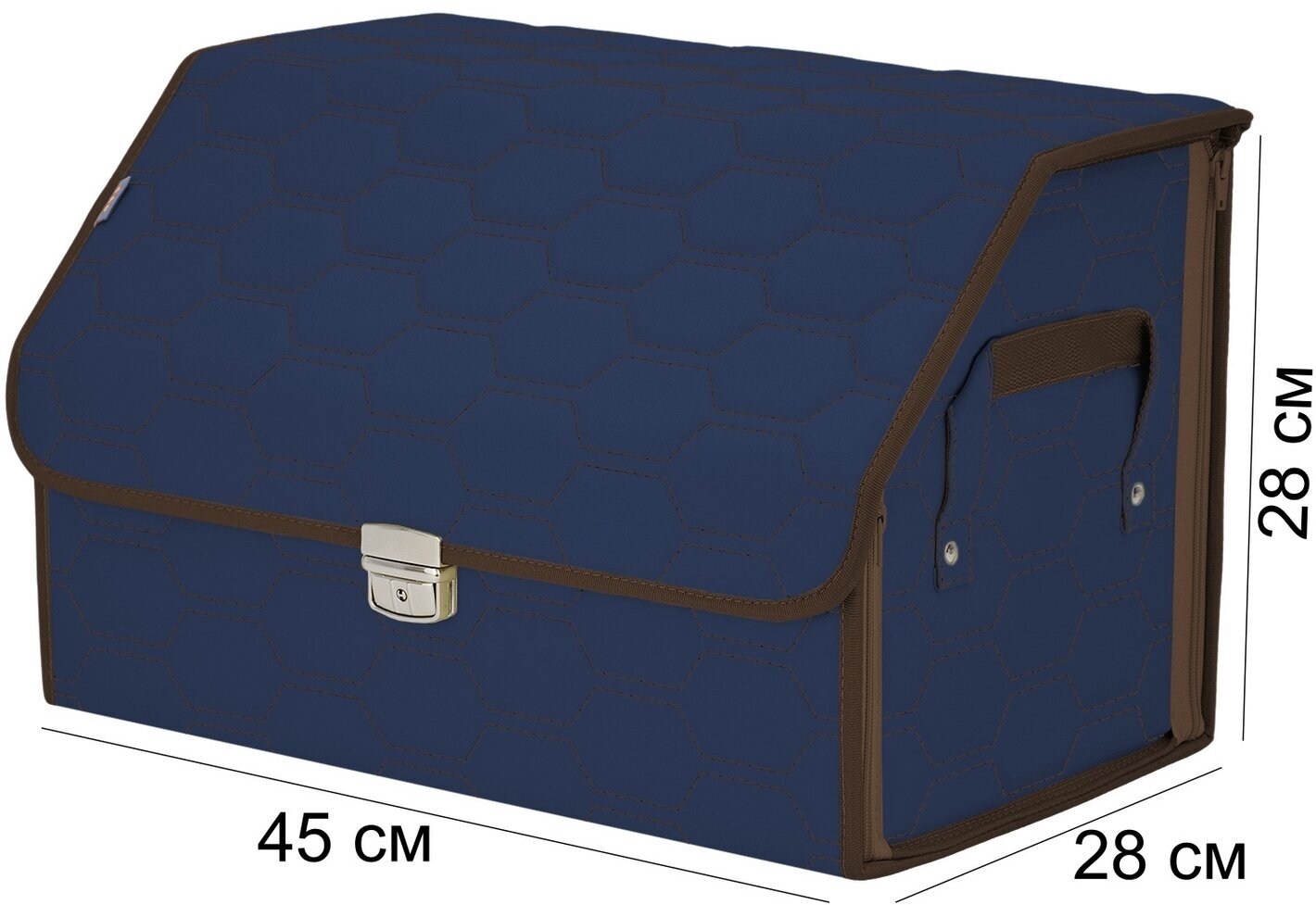 СохранитьОрганайзер-саквояж в багажник "Союз Премиум" (размер L). Цвет: синий с коричневой прострочкой Соты. интересное: