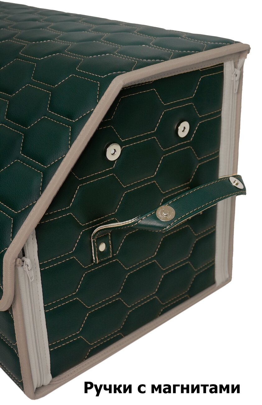 СохранитьОрганайзер-саквояж в багажник "Союз Премиум" (размер M). Цвет: зеленый с бежевой прострочкой Соты. интересное: