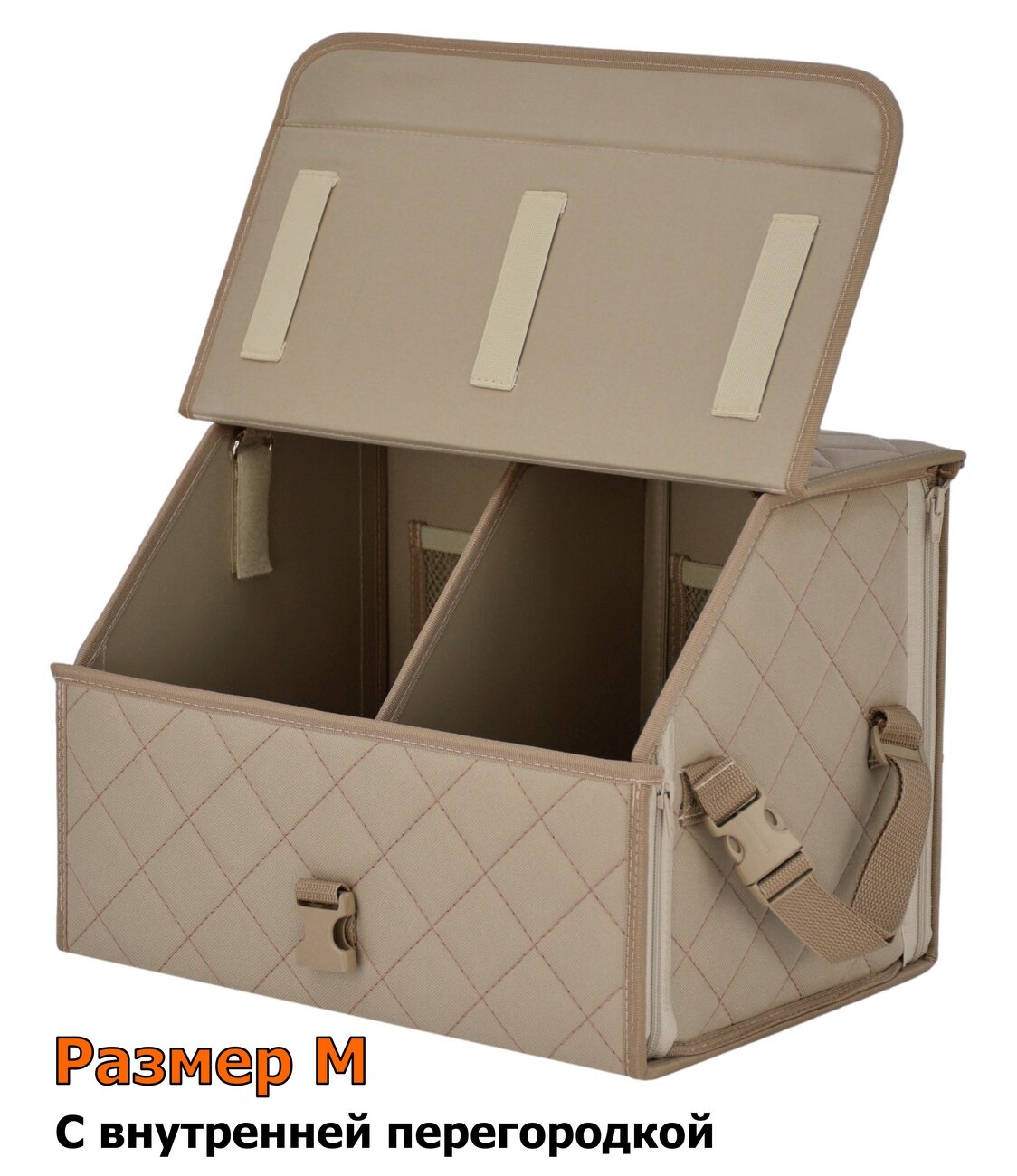 Купить Органайзер-саквояж в багажник "Союз" (размер M). Цвет: бежевый с бежевой прострочкой Ромб.