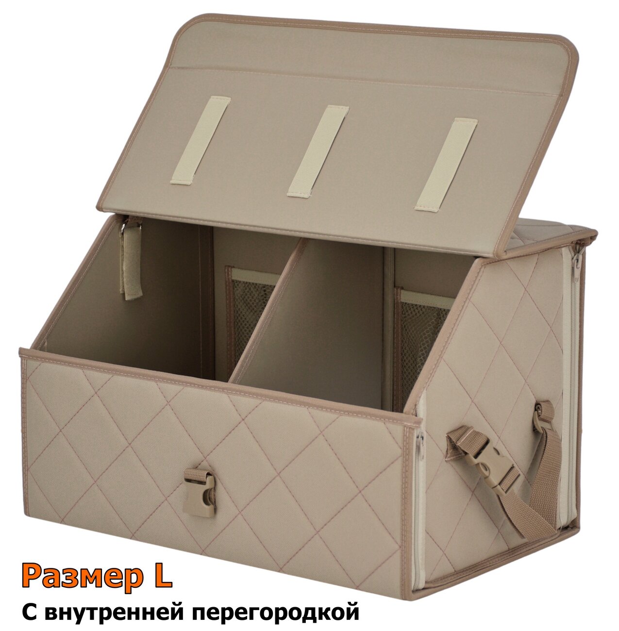 Купить Органайзер-саквояж в багажник "Союз" (размер L). Цвет: бежевый с бежевой прострочкой Ромб.
