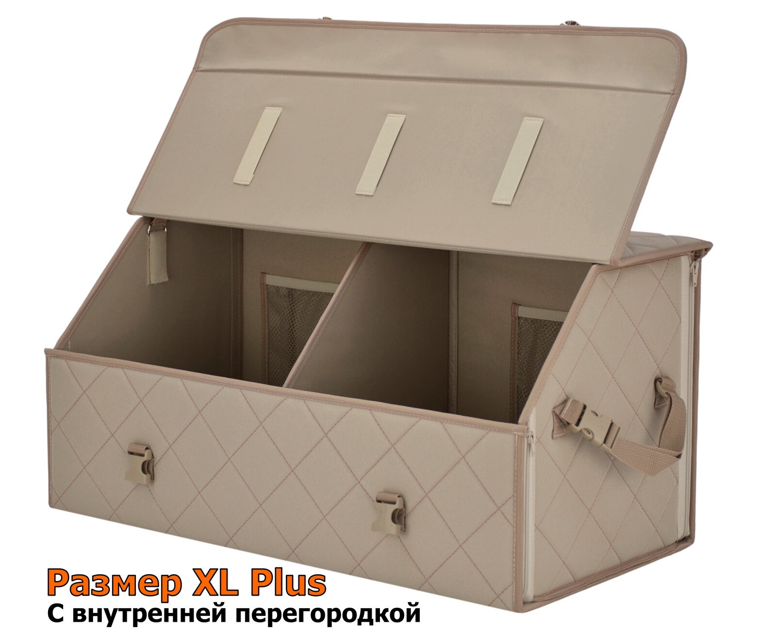 Купить Органайзер-саквояж в багажник "Союз" (размер XL Plus). Цвет: бежевый с бежевой прострочкой Ромб.